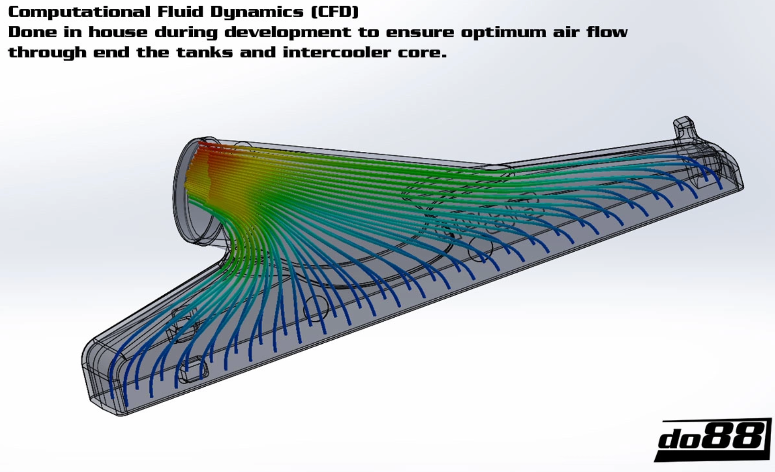 The do88 performance intercooler is an all-aluminum construction. With CAD-designed, flow optimized cast end tanks along with an optimized core design, it achieves the best possible cooling efficiency combined with lowest possible pressure drop!